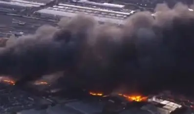 Uma coluna de fumaça era visível a quilômetros de distância na cidade. O incidente provocou um incêndio de grandes proporções — alimentado pelo combustível a bordo — ao longo de uma faixa que se estende por centenas de metros.