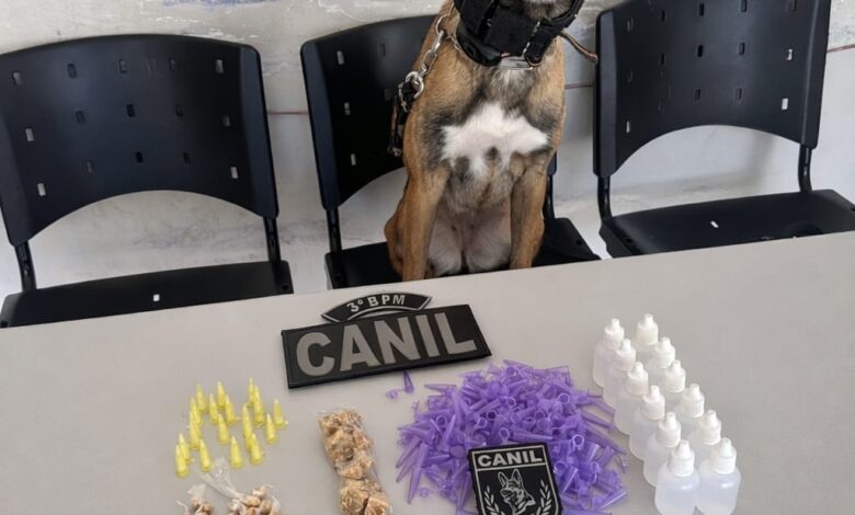 Durante patrulhamento ostensivo previamente planejado, a equipe concentrou buscas em uma área de córrego conhecida pelo intenso tráfico de drogas. Com o auxílio dos cães farejadores K9 Luna e K9 Beretta, os policiais localizaram diversas porções de entorpecentes espalhadas pelo terreno.