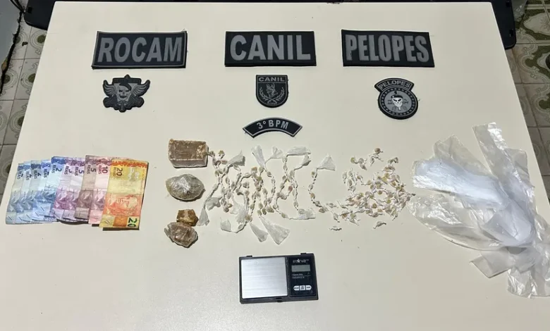 Com o apoio da cadela farejadora K9 Luna, os policiais encontraram uma grande quantidade de crack escondida dentro da caixa de descarga do banheiro. Além disso, foram apreendidos uma balança de precisão, sacos plásticos utilizados para embalar drogas e R$ 55 em dinheiro trocado.