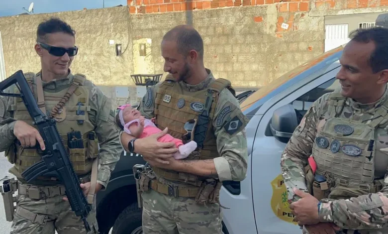 Sem hesitar, os agentes interromperam o serviço para atender ao chamado de socorro. O policial Felipe Campos relembrou a urgência da cena ao encontrar a bebê no banco da frente do veículo, no colo da avó. “Iniciamos imediatamente a manobra indicada para casos de engasgo em lactentes”, relatou o agente. A técnica, executada com precisão, permitiu que Aisha voltasse a respirar ainda no pátio do posto, antes mesmo de chegar à unidade hospitalar.